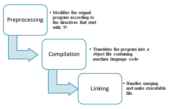 在此階段,預處理器根據指令(以 # 符號開頭)更改程式。C++ 預處理器處理程式並處理 #include 指令,生成的程式是純 C++ 程式。例如,在 C++ 程式中,#include<iostream> 會指示預處理器讀取 iostream 標頭檔案的所有內容,並將這些內容包含到程式中,從而生成一個單獨的 C++ 程式檔案。C++ 支援許多預處理器指令,如 #include、#define、#if、#else 等。