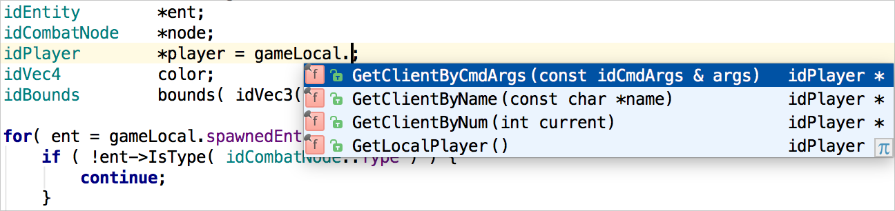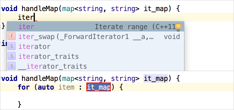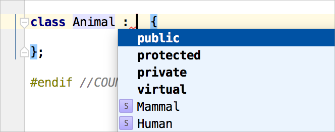 的東西。而這正是 CLion 的智慧補全所做的!它會根據程式碼上下文智慧地過濾建議。
