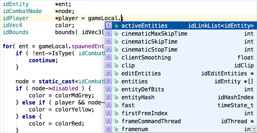 首先,我們都需要一個編輯器。程式碼補全至關重要:我們只需輸入一個符號(變數、函式、型別、類名),編輯器就會顯示一個匹配的建議列表。這很簡單,但我們在下面的示例中真的需要所有這些選項嗎?