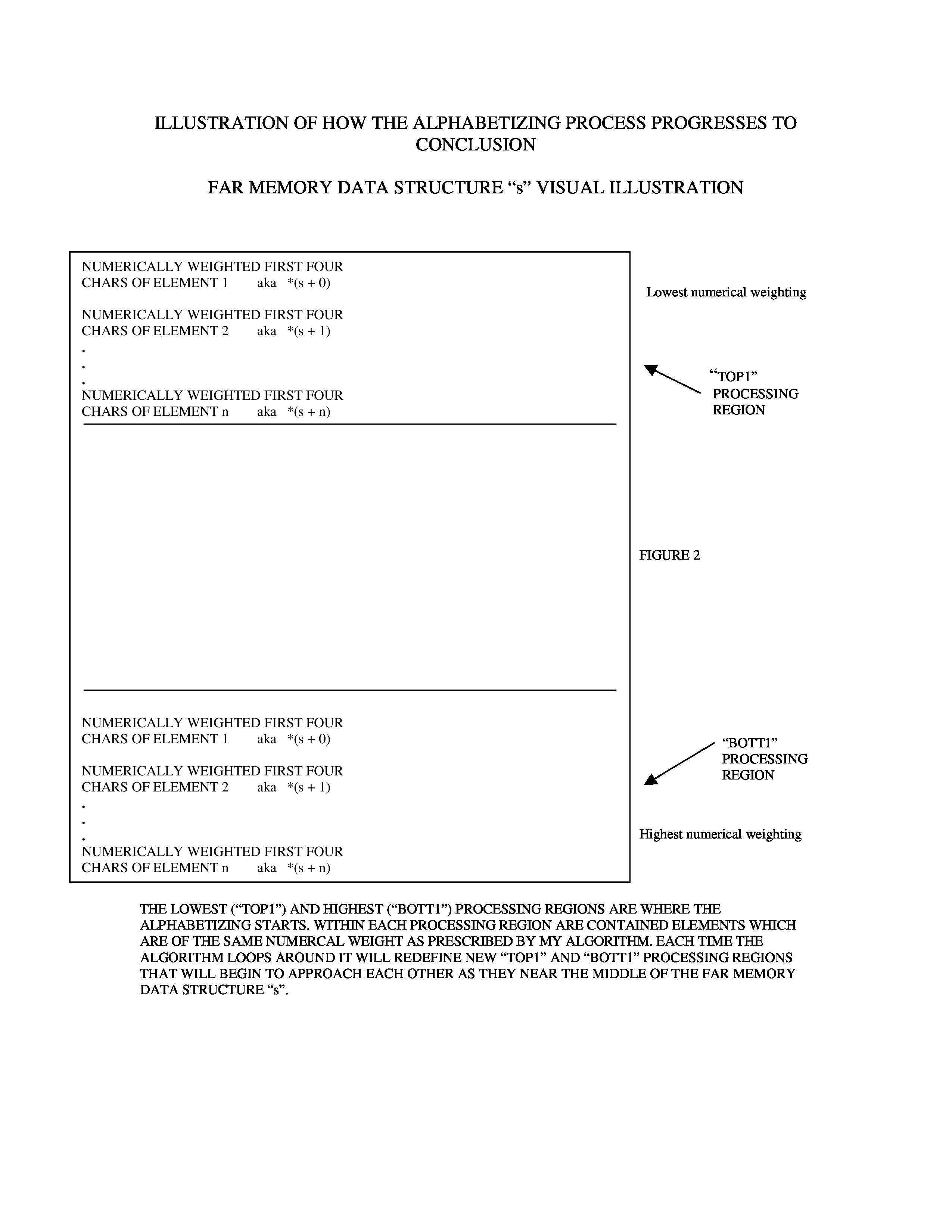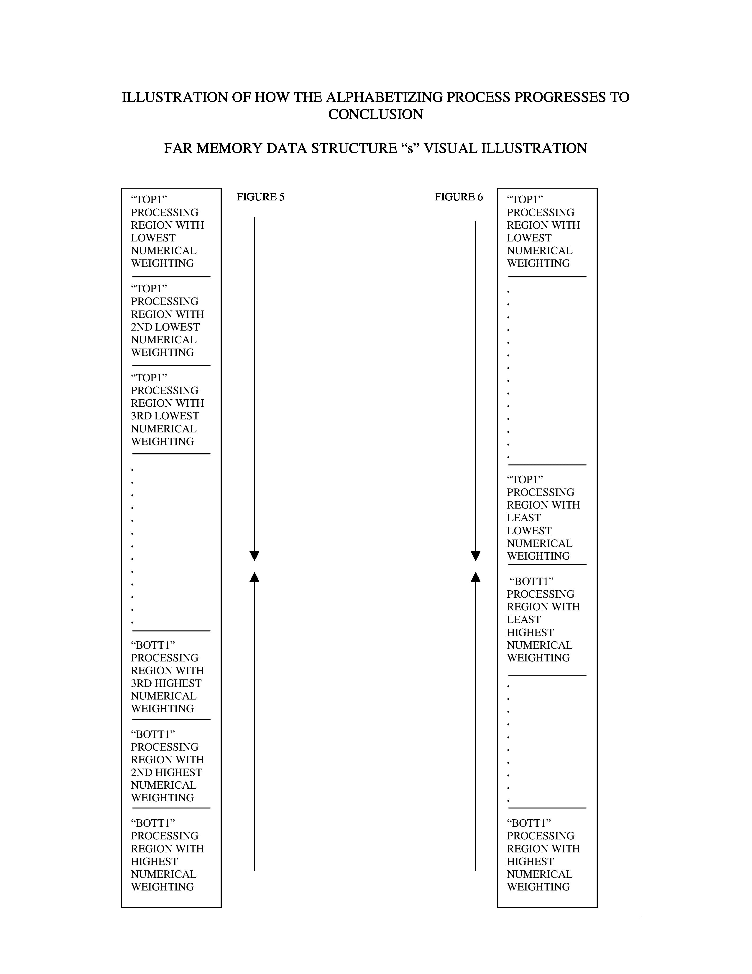 這兩個處理區域將在空間上彼此靠近,隨著它們從“主”處理迴圈的每次傳遞中重新定義,它們會向遠記憶體資料結構“s”的中心移動。每個新的“top1”處理區域的數值將高於其前一個“top1”區域。每個新的“bott1”處理區域的數值將低於其前一個“bott1”區域。請參考圖 3、4、5 和 6,以直觀地說明演算法的進展,因為 successive “top1” 和 “bott1” 處理區域在每次透過“主”處理迴圈時都會被重新定義。