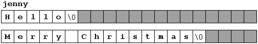 因此,由於字元陣列可以儲存比其總長度更短的序列,因此使用一個特殊的字元來表示有效序列的結尾: