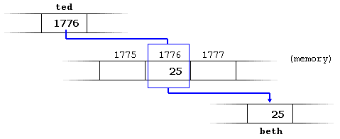beth = *ted; // beth equal to value pointed by ted ( 25 )