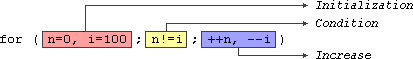 是一個有 *increase* 但沒有 *initialization* 的迴圈(可能因為變數在迴圈之前已被初始化)。沒有 *condition* 的迴圈等同於以 true