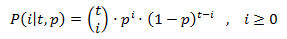 此分佈生成的隨機整數範圍為[0,t],其中每個值代表一系列t次試驗(每次成功的機率為p)中成功的次數。